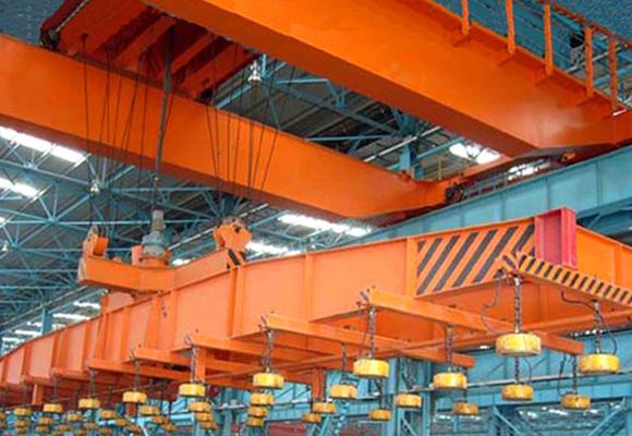 Suwnica dwudźwigowa z elektromagnesem to specjalistyczny dźwig do podnoszenia i przenoszenia wyrobów stalowych, blach stalowych i rur stalowych. Żuraw ten składa się z dźwigarów, mechanizmów jezdnych, wózka podnośnikowego, części elektrycznych i rozpraszacza elektromagnetycznego. Elektromagnetyczna siła ssąca tego suwnicy może trwać 10 minut po wyłączeniu. Kształt rozpraszacza elektromagnesów można dostosować do potrzeb klienta w zależności od kształtu materiału, który ma zostać podniesiony.