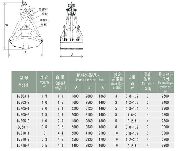 Chwytak typu semi-shear jest rodzajem chłonnego chwytacza o długim chwycie i chwytem typu shear, oraz kombinacji dwóch zalet, takich jak przedramię, ruchoma rozpórka, statyczny słup i szczęka itp. Centralny zawias przedramienia jest zawiasowo na jednym końcu przedniego ramienia środkowego zawiasu płyty szczęki, a drugi koniec jest wyposażony w przesuwne koło. Przesuwane koło jest podnoszone podczas operacji, tak że szczęka jest zamknięta, chwytając materiał, a siła chwytania jest silna. Jest łatwy do otwierania i nadaje się do przenoszenia materiałów sypkich, takich jak żółty piasek, węgiel, piasek w proszku i żużel stalowy dla pojedynczych lin i podwójnych dźwigów linowych.