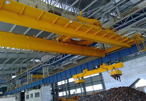 Podwójny dźwigar mostowy Żuraw z elektromagnesiem to specjalistyczny dźwig do podnoszenia i przenoszenia wyrobów ze stali, blach stalowych i rur stalowych. Żuraw ten składa się z dźwigarów, mechanizmów jezdnych, wózka podnośnikowego, części elektrycznych i rozpraszacza elektromagnetycznego. Elektromagnetyczna siła ssąca tego żurawia mostowego może trwać 10 minut po wyłączeniu. Kształt rozpraszacza elektromagnesów można dostosować do potrzeb klienta w zależności od kształtu materiału, który ma zostać podniesiony.