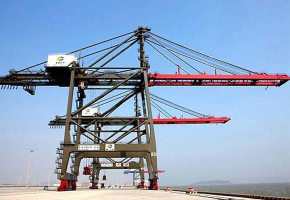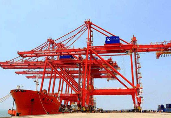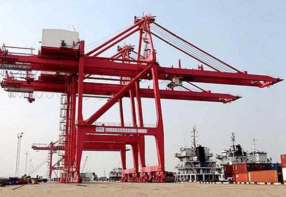 Żuraw kontenerowy przy nabrzeżu to dźwig obsługujący kontenery zainstalowany na dużej doków w celu załadunku i rozładunku pojemników na statki do wózków kontenerowych. Żuraw kontenerowy przy doku składa się z ramy nośnej, która może poruszać się po torze szynowym. Zamiast haka żurawie są wyposażone w specjalistyczny rozsiewacz, który można zablokować na kontenerze.