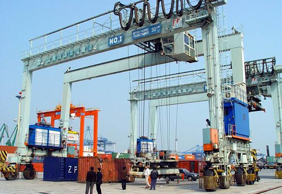 1. Suwnica bramowa z gumowymi oponami jest zwykle nazywana skrótem RTG, co służy do układania kontenerów na placach składowych kontenerów. Dźwig gąsienicowy z gumowymi oponami jest elastycznie przenoszony przez własne gumowe opony do przeładunku kontenerów.
