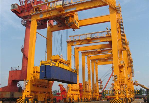 Do obsługi kontenerów, łodzi / jachtów, dużych elementów w miejscach załadunku / rozładunku i placu kontenerowego wykorzystywana jest dźwigarka do kontenerów z gumowymi oponami. Ten gumowany dźwig jest wyposażony w wiele rozrzutników punktów zaczepowych, aby sprostać wymaganiom różnych sytuacji podnoszenia. Cały żuraw może wykonywać 360-stopniowy układ kierowniczy z elastycznym ruchem.