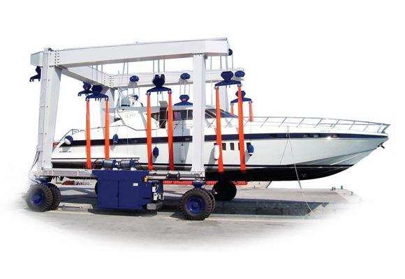 Dźwig do obsługi łodzi i jachtów obejmuje następujące elementy: konstrukcję główną, blok koła jezdnego, mechanizm podnoszący, mechanizm kierowniczy, hydrauliczny układ przeniesienia napędu i elektryczny układ sterowania. Główną konstrukcją jest typ N, który może przenosić łódź / jacht o wysokości przewyższającej wysokość żurawia.